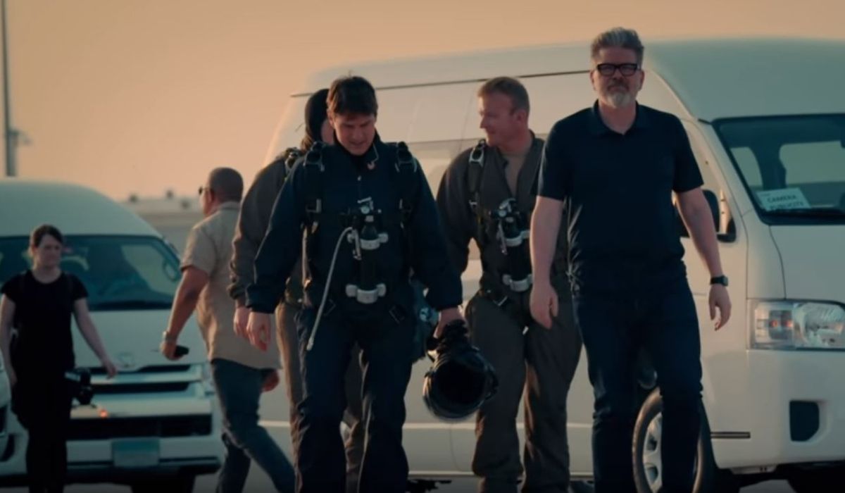 In the video, Tom Cruise barrels down a ramp off a cliff, in mid-air he lets the bike go before his parachute is released. McQuarrie’s mouth drops as he watches the first take. The director jokingly said that they are scared thinking about the stunt sequences in Mission Impossible 8.